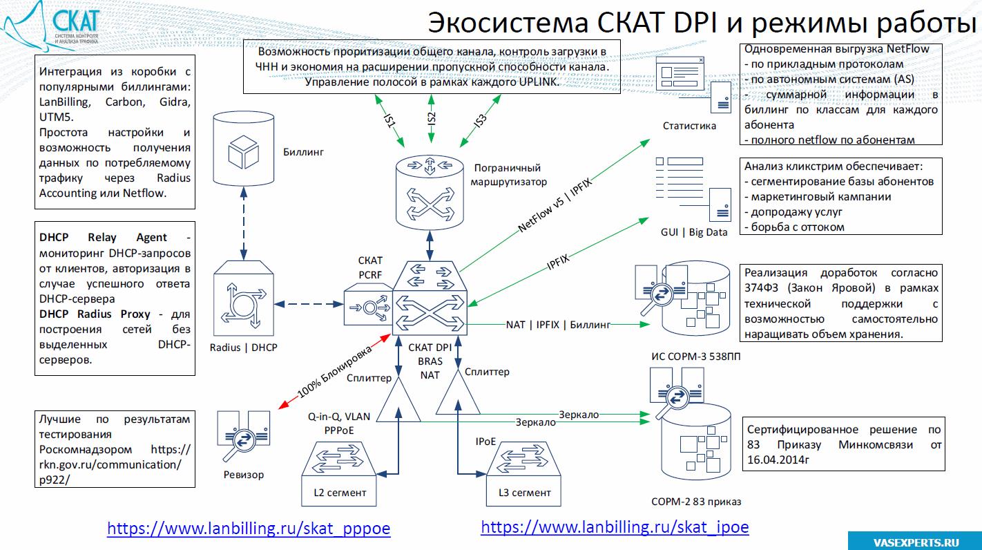 15 марта 2018 года компания VAS Experts с участием специалиста от LANBilling провела вебинар «BRAS на базе СКАТ DPI. Особенности взаимодействия с биллингом. Пример интеграции с LANBilling».